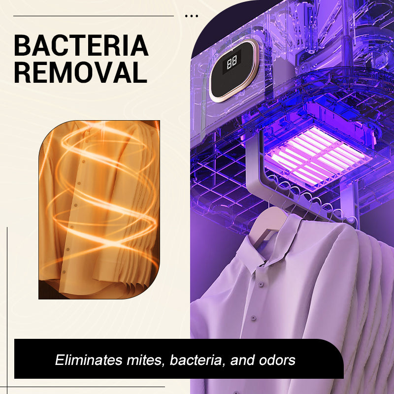 DESINFEKTIONSKRAFT – Das Gerät trocknet nicht nur, sondern sorgt auch für Sauberkeit. Die heiße Luft beseitigt Bakterien und Hausstaubmilben, während die integrierte Negativ-Ionen-Technologie Gerüche neutralisiert. So ist Ihre Kleidung nicht nur trocken, sondern auch hygienisch einwandfrei und riecht sauber.