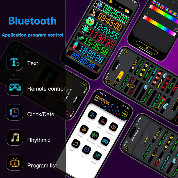 LED tabela, Bluetooth bağlantılı bir uygulama aracılığıyla kontrol edilir ve bu sayede aynı anda birden fazla LED ekranı bağlayarak işletmenizi daha çekici hale getirebilirsiniz. Uygulama, çok sayıda ilgi çekici mod ve animasyon sunar. Akıllı telefonunuzu kullanarak, mağazanızı kişiselleştirmek için şablonları ve ilgi çekici metinleri kolayca özelleştirebilirsiniz.